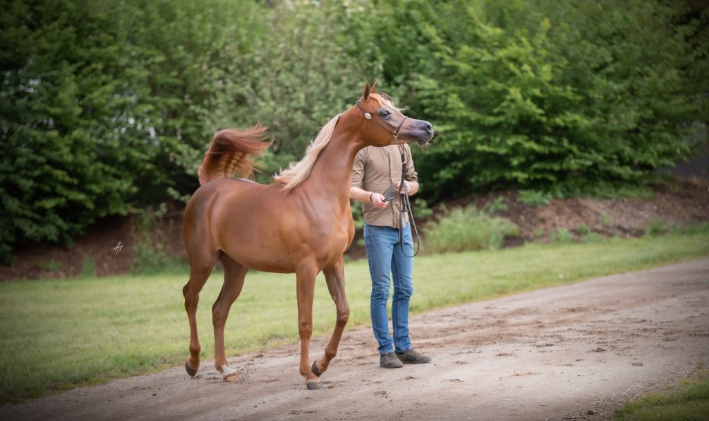 Virouzeh Al Sahidi was born in the early morning of June 23, 2021, after a heavy and challenging birth for her dam. “Firouzeh” (فیروزه) is the Persian word (and girls’ name) for the gemstone turquois, and a gemstone she is! She is sired by the multi champion Ali Khan, owned by Böhmer Horses, out of our *Elite mare and WAHO Trophy winner Valeta F.